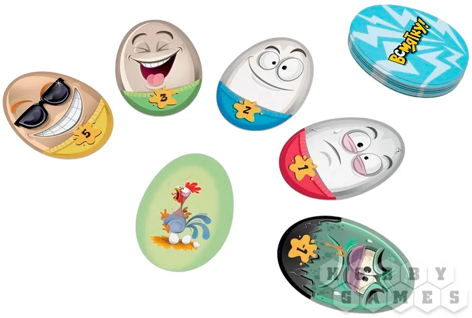 В этой весёлой и динамичной настольной игре участники примеряют на себя роли фермеров, которые занимаются разведением птиц. Их задача – как можно скорее избавляться от испорченных яиц, которые появляются в их лотках. А чтобы это сделать, можно прибегнуть к нескольким хитрым действиям: к примеру, стухшее яйцо можно подкинуть своему соседу по столу, чтобы он разбирался с проблемой. Или можно поменять яйца в лотке местами, чтобы спрятать испорченное среди свежих. А ещё есть возможность даже "усыпить" карту с непригодным яйцом, просто перевернув её изображением вниз, чтобы оно больше не доставляло хлопот.