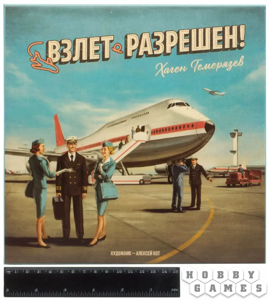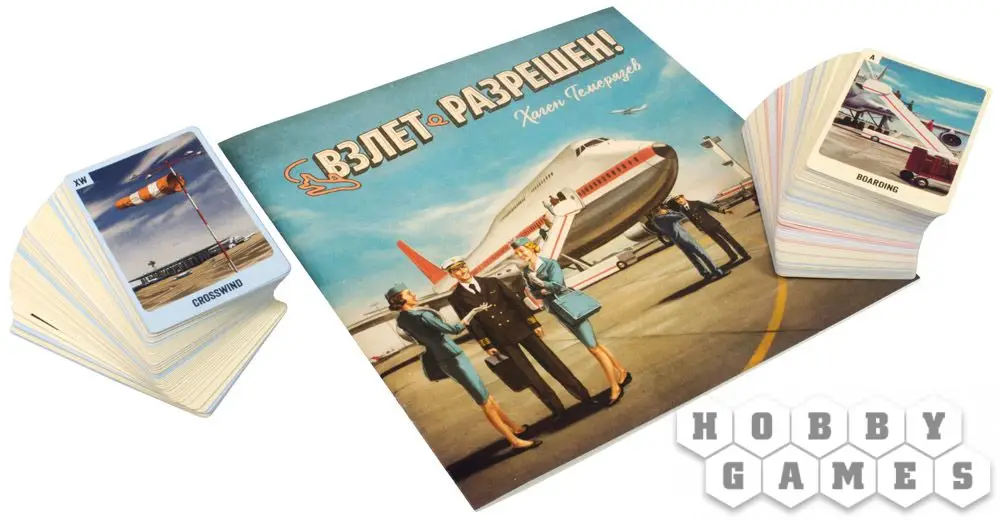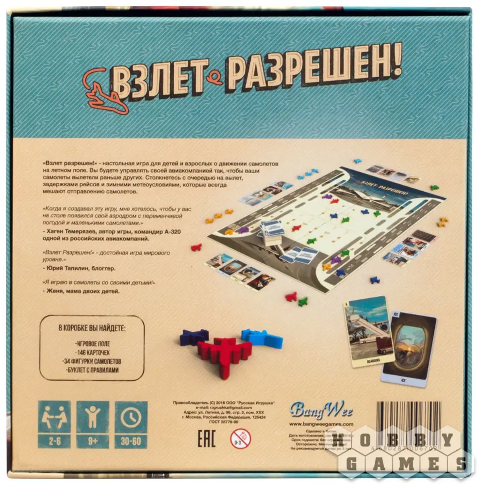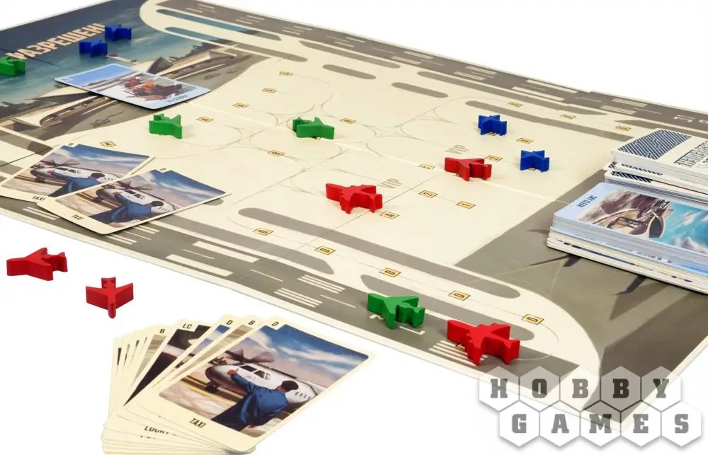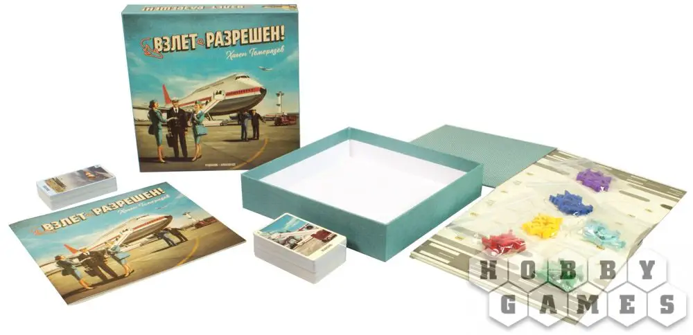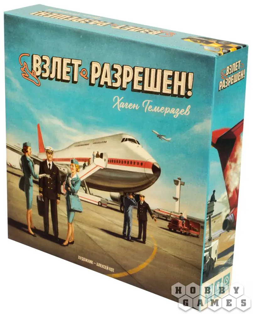 "Взлёт Разрешён" – это уникальная настольная игра от отечественных разработчиков, посвящённая гражданской авиации. В ней вам предстоит заняться планированием вылетов самолётов, причём, каждый игрок получит в управление свою авиакомпанию, которая будет отличаться от компаний соперников оригинальным парком самолётов, так что у всех игроков могут быть различные стратегии для победы. Изначально весь ваш флот находится в ангарах, а ваша основная задача – позволить всем самолётам покинуть аэропорт, то есть взлететь. Мешать вам в этом будут изменяющиеся метеоусловия, различные поломки и задержки. Разыгрывая карты нескольких типов, вы будете решать возникающие проблемы, выводить свои самолёты на взлётные полосы, а также мешать самолётам противника.