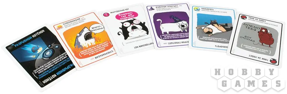 Каждый игрок получает на руки по восемь случайных карт, среди которых одна специальная карта "Обезвредь". С помощью этой карты вы сможете выжить, если вытащите взрывного котейку. Это самые ценные карты и их надо набирать побольше!