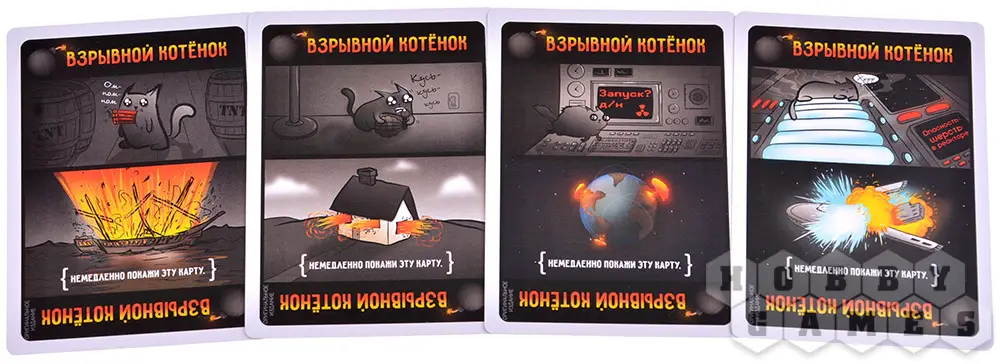 Игра предлагает быстрый и динамичный игровой процесс, где вам придётся взвешивать риски. Игра отдалённо напоминает своим принципом "русскую рулетку" – игроки тянут по очереди карты из колоды, и, если им попадается один из взрывных котеек, то он тут же взрывается и выбывает из игры! Для того, чтобы этого не произошло, можно использовать различные карты или даже их комбинации.