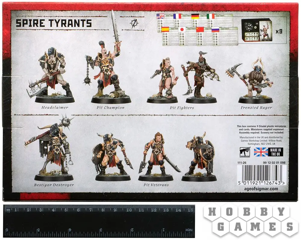 Покажите свою мощь на полях сражений Warcry с помощью банды Тираны Шпиля. Универсальные, смертоносные и вооружённые до зубов, этот отряд идеален для игроков, которые ищут разнообразный отряд с множеством подлых уловок. С помощью этой коробки вы сможете выставить на поле боя девять безжалостных бойцов арены, среди которых: один Бестигор Разрушитель, один Чемпион Ямы, один Яростный Псих, один Собиратель Голов, один Воин Ямы с сетью, два Ветерана Ямы с Щитами или двойным оружием и один Воин Ямы с ножами-кастетами или копьём.