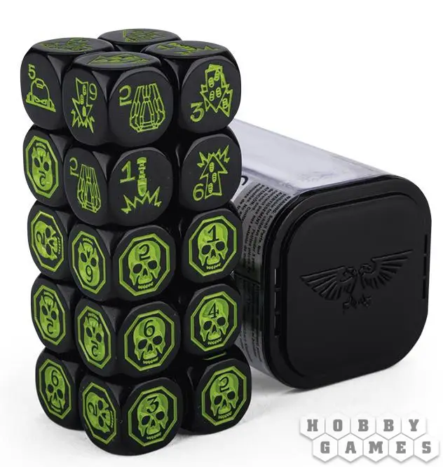 Кубики для игры в Warhammer 40000 с соответствующими обозначениями и яркой стилизацией. Помимо сбалансированности и удобства они придадут вашей игре атмосферности.