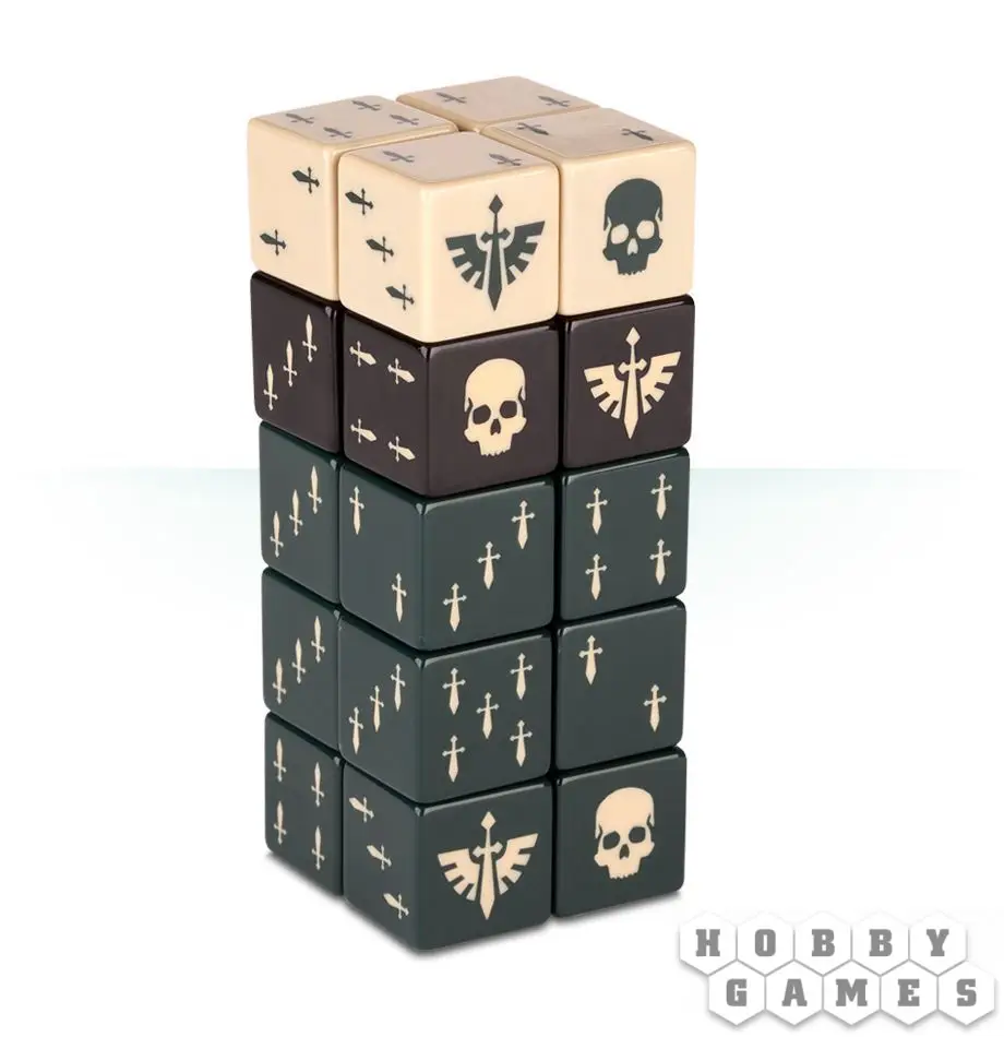 Набор из 20 кубиков 16 мм разных цветов, соответствующих Ордену Темных Ангелов.