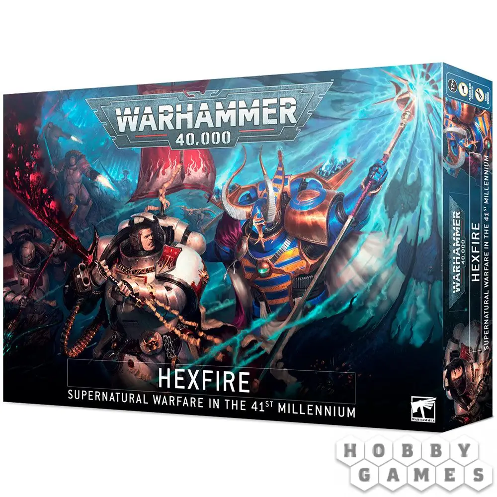 40-страничная книга кампании Hexfire включает в себя сюжетные детали битвы за Хексенфаст, в которую оказались втянуты Серые Рыцари и Тысяча Сынов, и правила, с помощью которых вы можете отразить сверхъестественные способности участников этой схватки. Внутри также содержатся датапланшеты для всех компонентов набора, включая правила Crusade и альтернативные варианты юнитов.