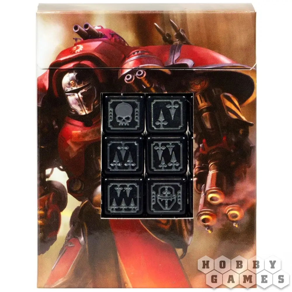Набор игровых кубов фракции Имперских Рыцарей выполнен в черном цвете с серебряными отметками. На каждом кубике уникальная символика заменяет шестерку и единицу. Структура костей предоставляет идеальное соприкосновение с поверхностью игрового стола.