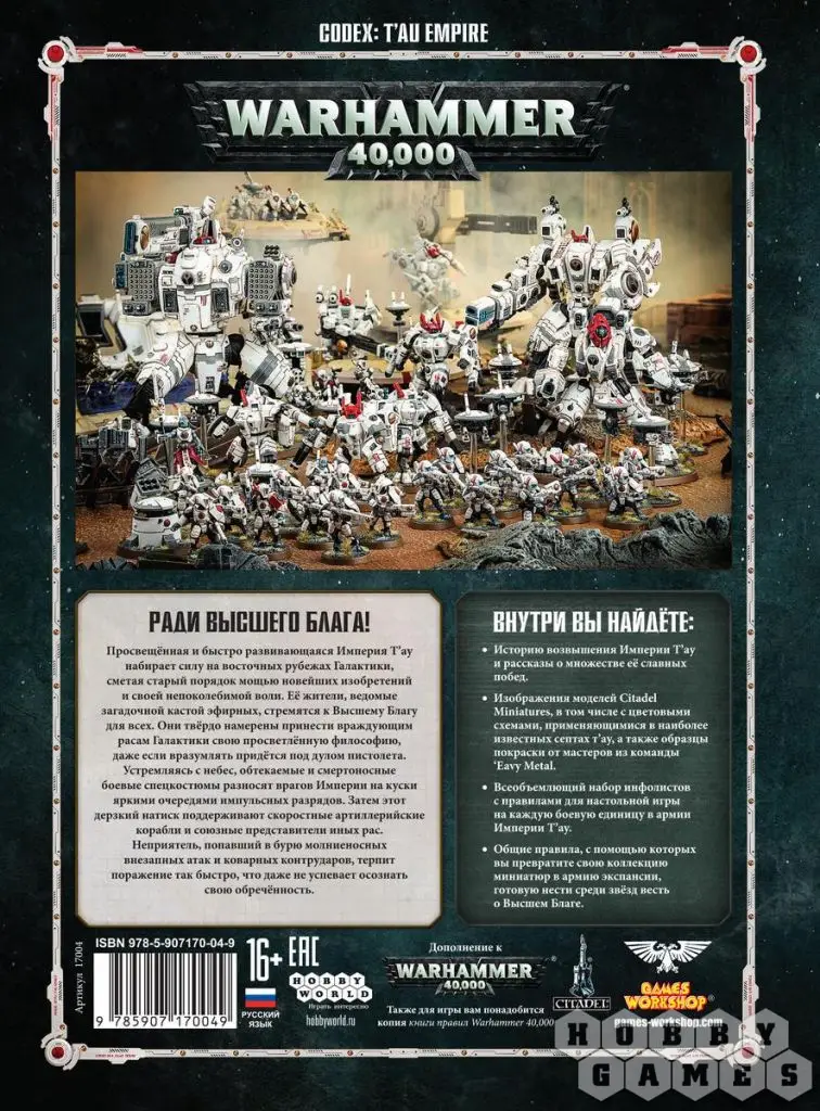 В книге Кодекс: Империя Т'ау содержится свод правил и бэкграунд армии Империи Т'ау: