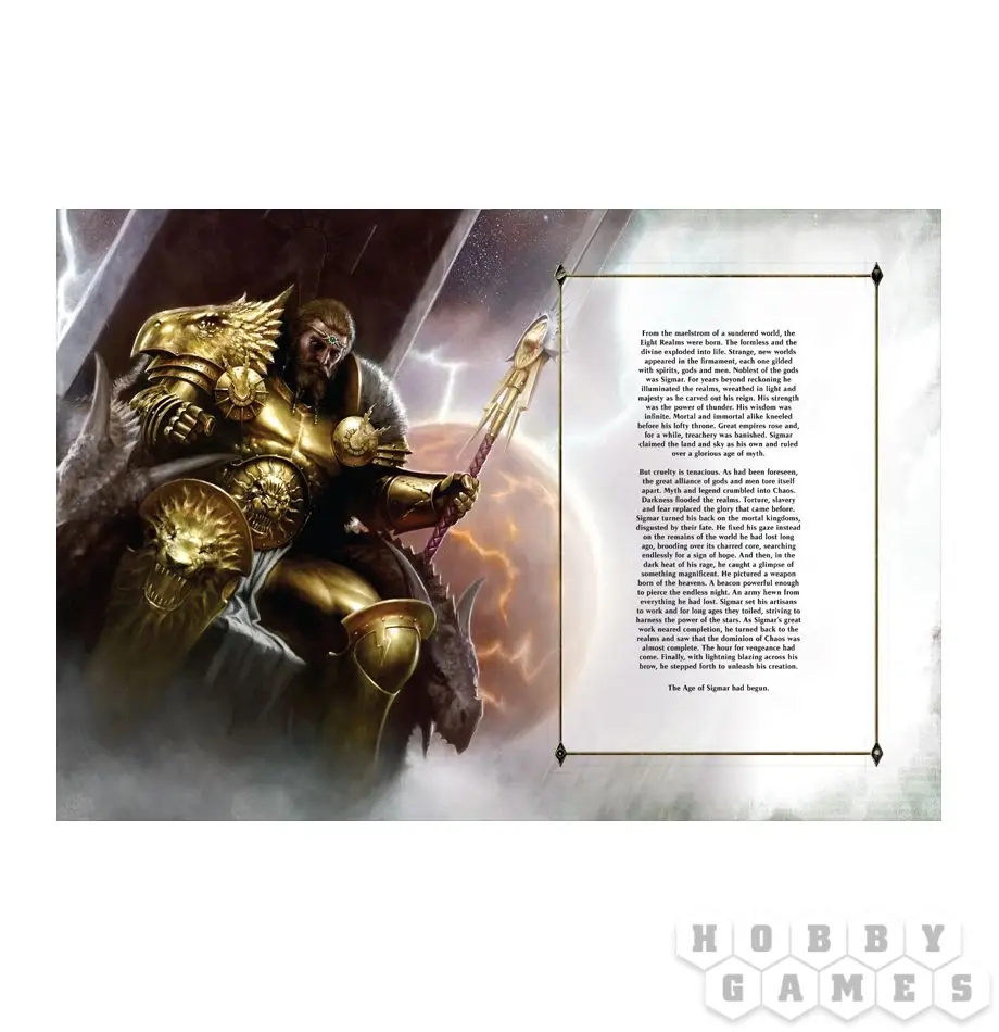 Эпоха Сигмара - эпическое место, населенное множеством армий, могущественными героями и великолепными монстрами. В нем происходят кровопролитные войны между силами Ордена и Хаоса, сеющие смерть и разрушение. С помощью книги Age Sigmar Core Book вы не только узнаете богатую историю этого раздираемого войной мира, но и найдете все необходимые описания, чтобы разыграть эти эпические истории на собственном столе. Книга содержит 320 страниц описаний и легенд.