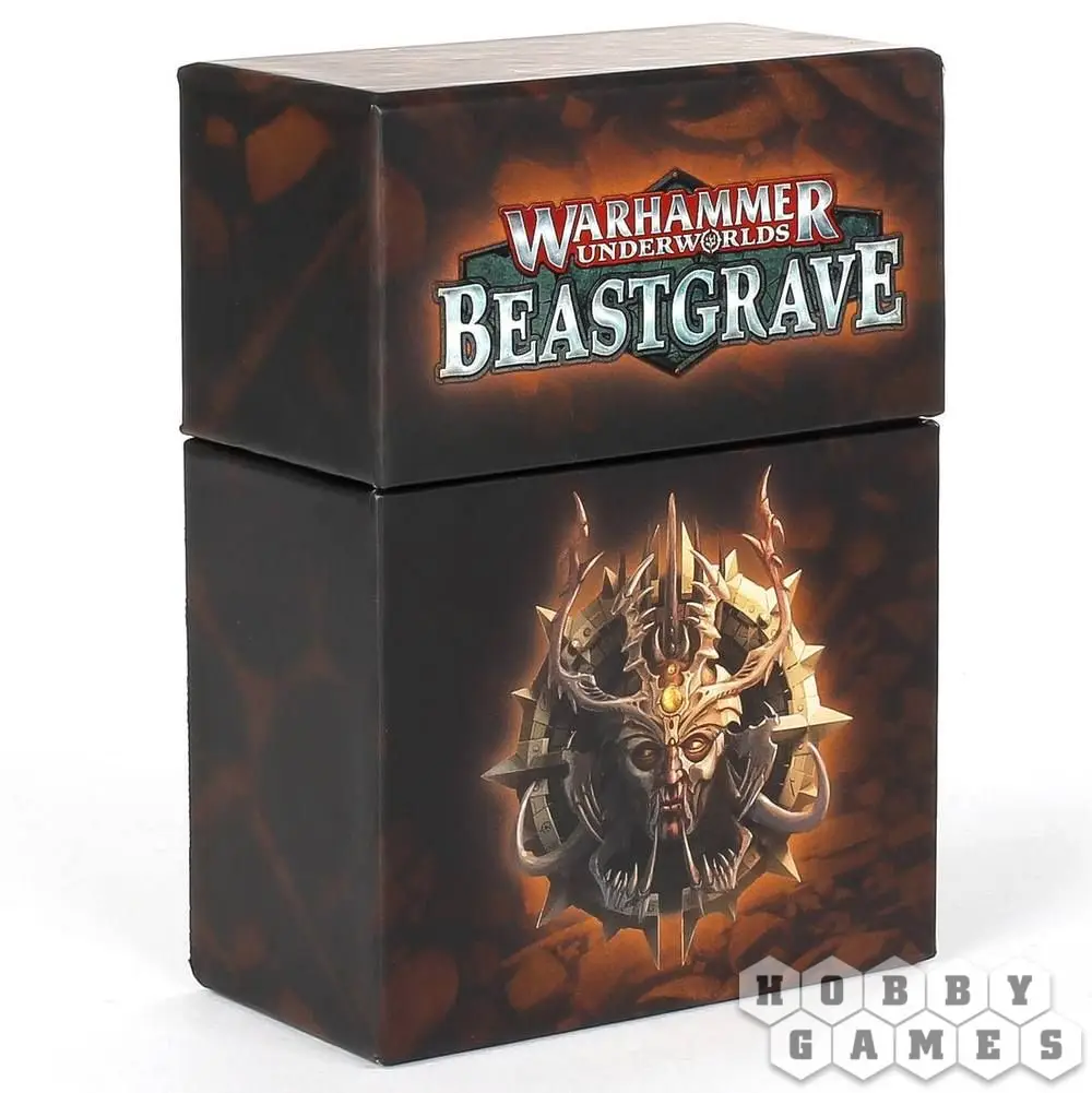 Warhammer Underworlds уникальна тем, что помимо миниатюр в ней используются и составляемые игроками колоды. Храните свою колоду карт в безопасности от всего, что ожидает её в Beastgrave или, по крайней мере в вашей сумке. Эта изящная коробочка для карт оформлена в стилистике третьего сезона игры Warhammer Underworlds. В неё с легкостью помещаются семьдесят пять карт без протекторов или же около 50 карт в протекторах. Можете не беспокоиться, в неё поместится колода любой банды, даже в самых плотных протекторах. Коробочка имеет жёсткую конструкцию с плотно прилегающей крышкой и гарантирует, что даже после падения ваши карты останутся в сохранности.