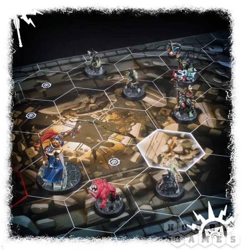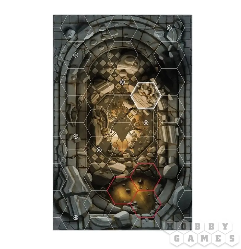 На одной стороне карты набора Warhammer Underworlds: Nightvault Forbidden Chambers Board Pack есть три смертельных гекса, которые могут стать непроходимым препятствием и опасной ловушкой.