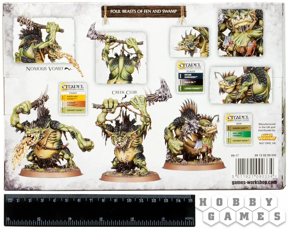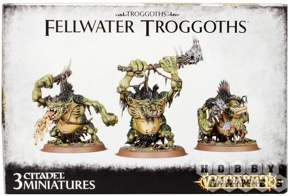 Fellwater Troggoths - жалкие создания, обитающие на топях и болотах. Эти покрытые чешуей и слизью существа источают такое зловоние, что даже по меркам их зеленокожих собратьев это чрезвычайно отвратительно.