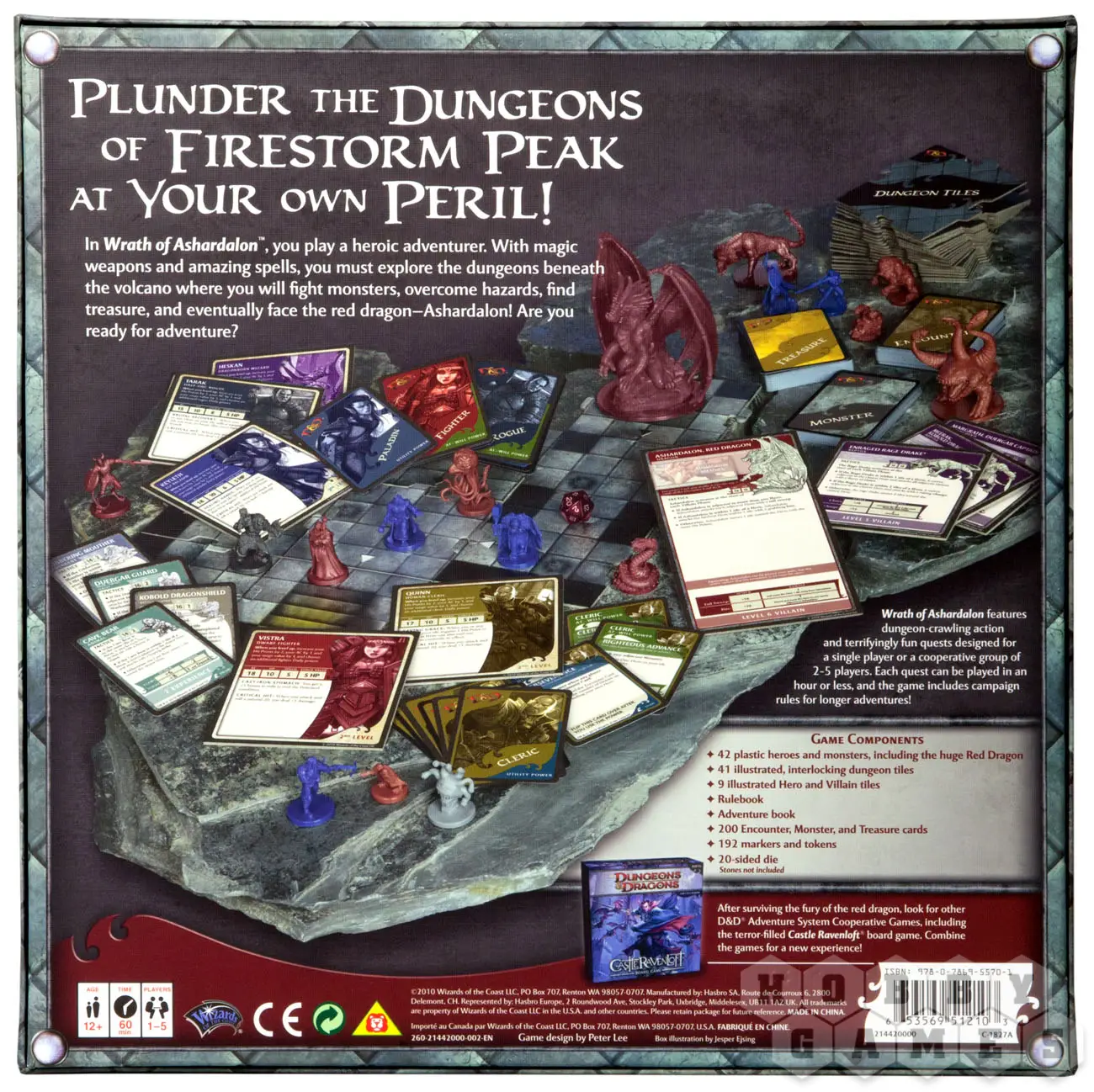«Wrath of Ashardalon/ Гнев Ашардалона» – это настольная игра во вселенной Dungeons & Dragons. В этой игре Вы можете победить только все вместе… впрочем, и проиграть тоже. Какие-то игровые сценарии предполагают объединение усилий, и тогда Вам и Вашим друзьям приходится работать в команде для того, чтобы достичь успеха. Другие сценарии ориентированы на соперничество, и тогда Вы должны превзойти других игроков для достижения победы. Каждый игрок выбирает себе героя: клирика, воина, разбойника, мага или следопыта. Они исследуют подземелье замка, разгадывают тайны, сражаются с монстрами и находят волшебные сокровища. Игра бросает вам вызов: она будет (с небольшой помощью от вас) расставлять ловушки, запускать различные события, вызывать монстров и злодеев себе на подмогу – уж этого добра в залах Замка хватает. Игра предназначена для 1-5 игроков, она включает в себя несколько сценариев, задания различной сложности и предполагает много взаимодействия между игроками.