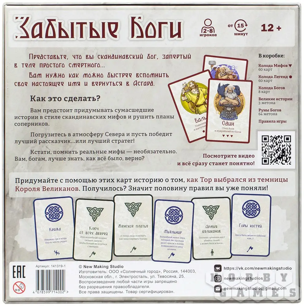 Вы – один из скандинавских богов, настолько древний, что совершенно не помните, какой именно. И это срочно нужно выяснить! Собравшись с остальными небожителями, точно так же забывшими своё имя, вы рассказываете истории своих подвигов и злоключений, надеясь на то, что кто-то всё-таки вспомнит, как вас зовут. А тот, кто вспоминает своё имя – возвращается в обитель богов, Асгард, и побеждает в раунде.