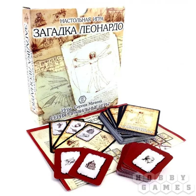 «Загадка Леонардо» — настольная карточная игра-головоломка, участники которой исследуют записи Леонардо да Винчи в поисках скрытых закономерностей. Обнаружив последовательность из трёх одинаковых символов, игрок получает соответствующий ключ. Цель игры — собрать семь разных ключей: тот, кто сделает это первым, раскроет загадку Леонардо и станет победителем.
