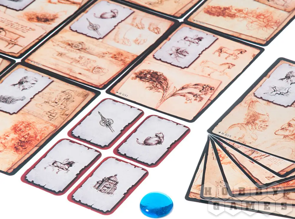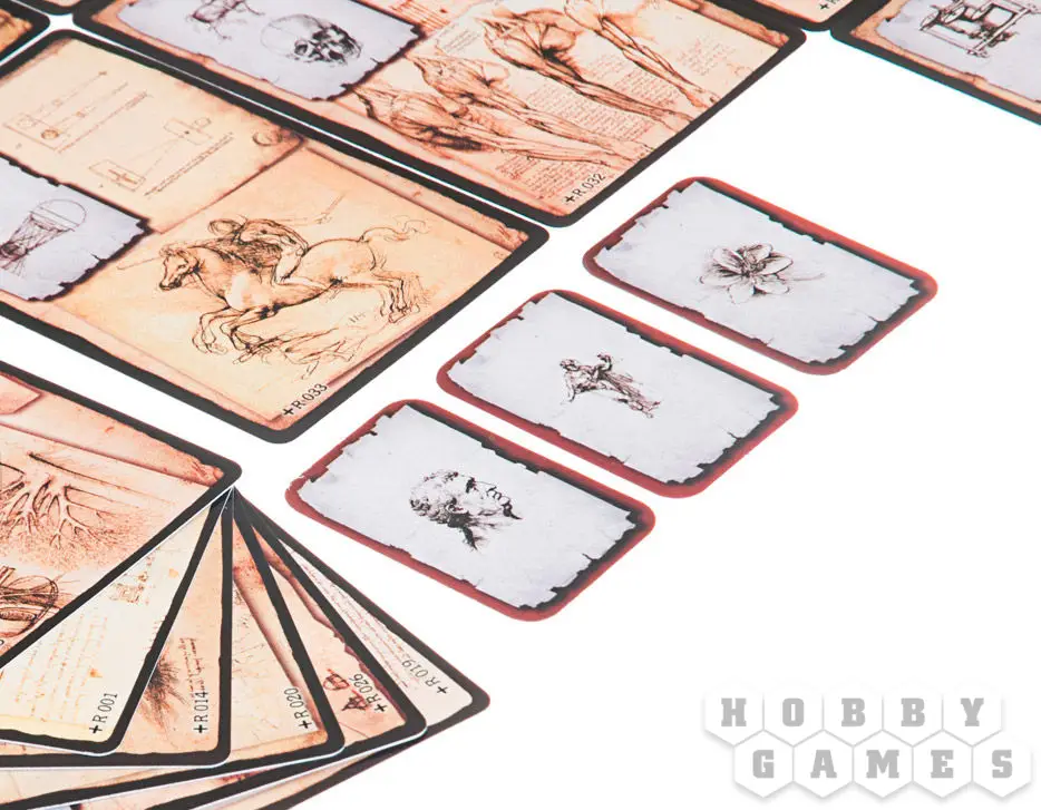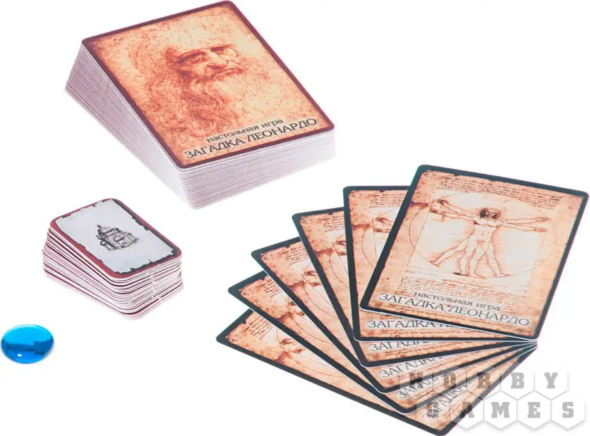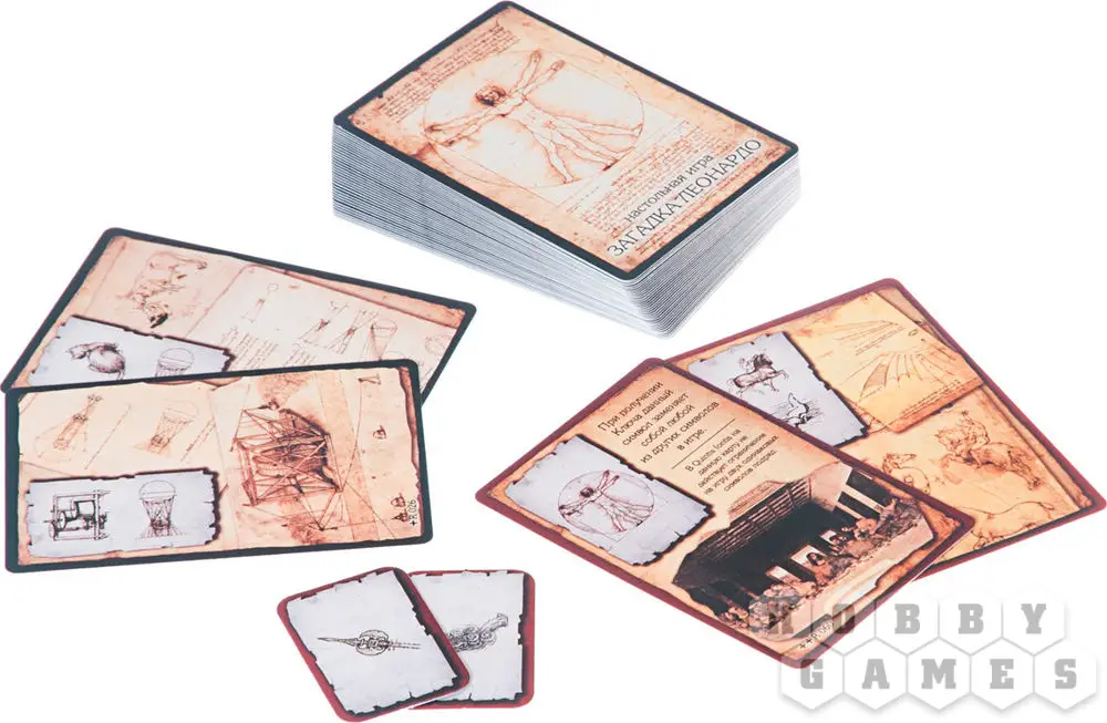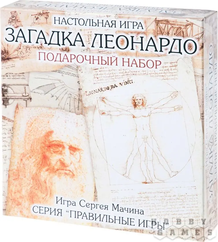 "Загадка Леонардо" - это увлекательная настольная головоломка, участники которой ищут скрытые связи в бумагах да Винчи. Записки Леонардо представлены в игре картами, на каждой из которых изображена пара символов из дневников великого художника и мыслителя: механизм, профиль, собор, цветок, схематические изображение затмения и т.п. Карты на столе перед игроком образуют его рабочее пространство, где он выстраивает линии из одинаковых символов. Для этого каждый ход игрок заменяет картой с руки одну карту в своём рабочем пространстве; последняя при этом уходит сопернику слева, изменяя и его игровую ситуацию. Получив ряд из трёх одинаковых символов, игрок берёт соответствующий жетон ключа, становясь на шаг ближе к победе.