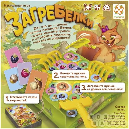 Игра "Загребелки" – это динамичная и весёлая игра на ловкость! Вы окажетесь в роли проворных белочек, которые спешно собирают урожай на щедрой лесной поляне. Уникальность игры – в простых, но азартных правилах, где главный инструмент – это грабли! Вам предстоит не просто хватать лакомства, а делать это виртуозно, стараясь не разрушить всю хрупкую груду запасов. Красочные, будто сошедшие со страниц сказки, компоненты создают особую атмосферу лесного приключения. Это прекрасный способ развить мелкую моторику, меткость и умение действовать в весёлом хаосе!