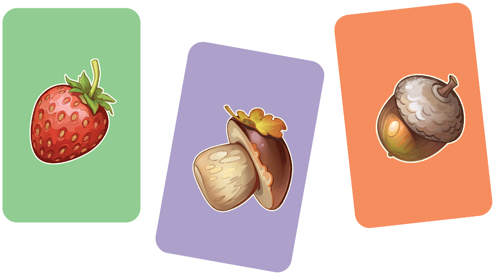 Переверните дно коробки – это ваша общая поляна. Рассыпьте все жетоны лакомств в её центре живой, пёстрой кучей. Каждый игрок садится у своей стороны поляны, получает грабли и свою секретную колоду из семи перевёрнутых карт. Положите одну руку на колоду, в другую возьмите грабли – можно начинать лесную суматоху!
