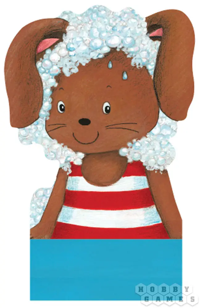 Зайка плещется в ванночке с двумя резиновыми утками. С ним его любимые игрушки — ведёрко, кит и кораблик. Но пены в ванночке стало так много, что Зайка потерял из виду свои игрушки. Помогите ему их отыскать!