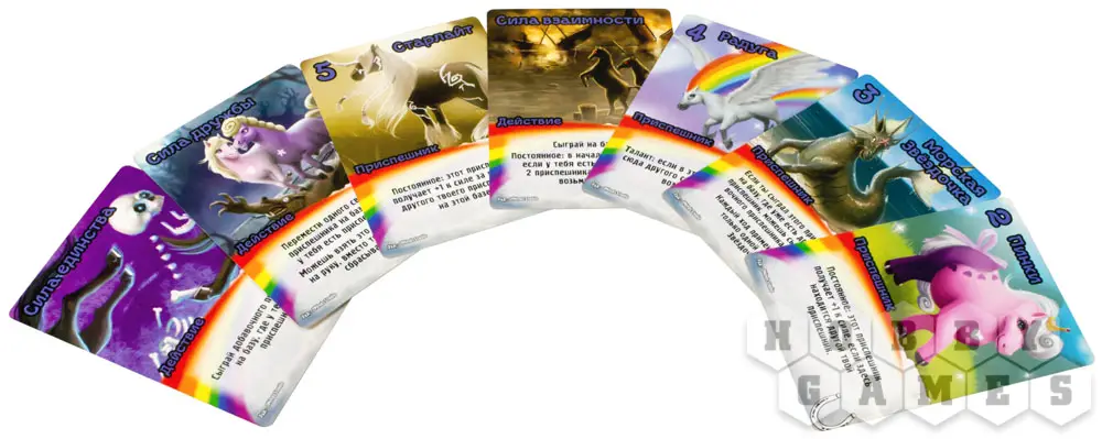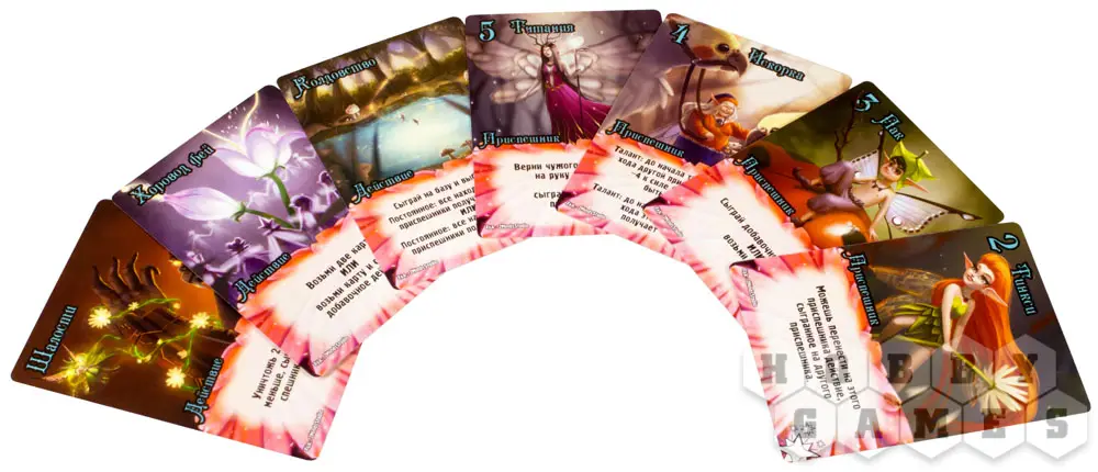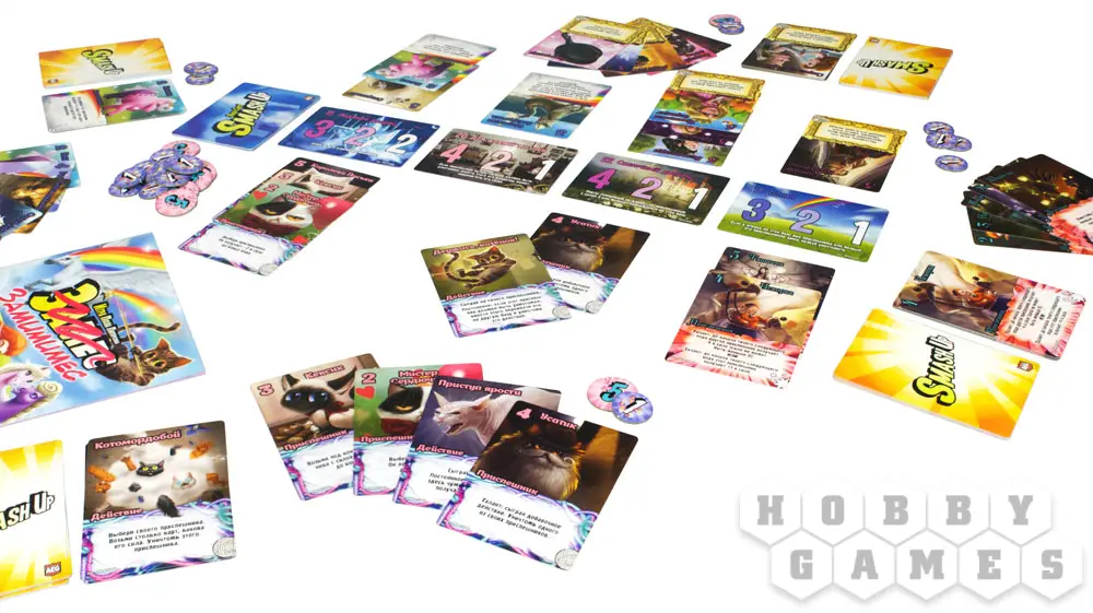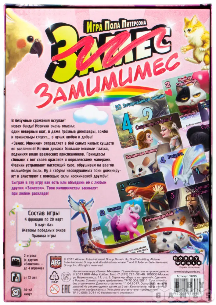 В коробке “Замес. Мимими” всего 4 новые фракции, из которых можно собрать 6 разных уникальных колод. Это число можно увеличить, объединив расширение “Мимими” с прошлыми и будущими версиями игры.