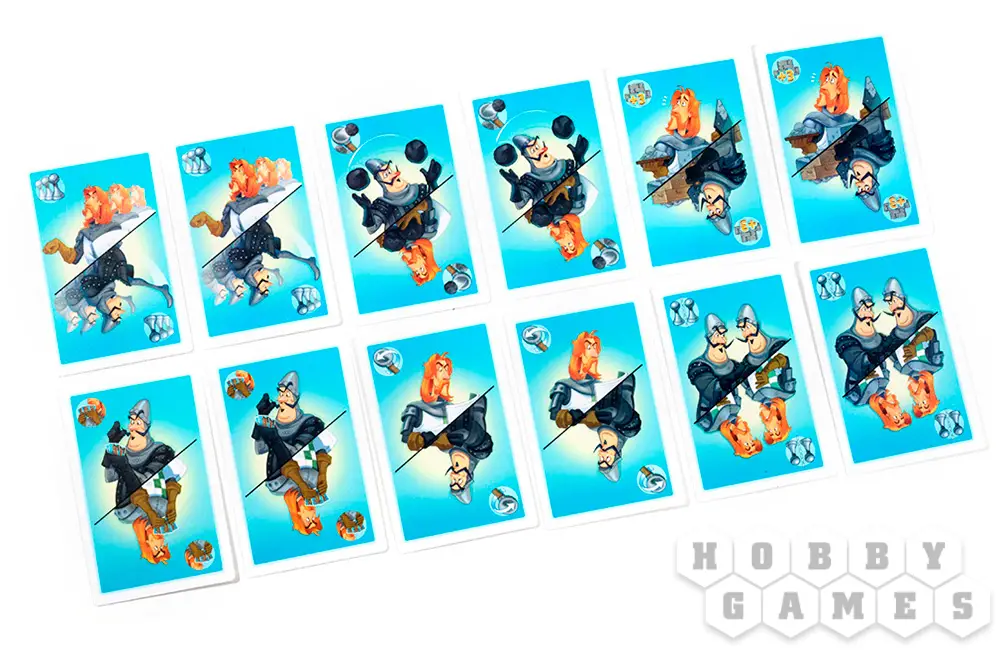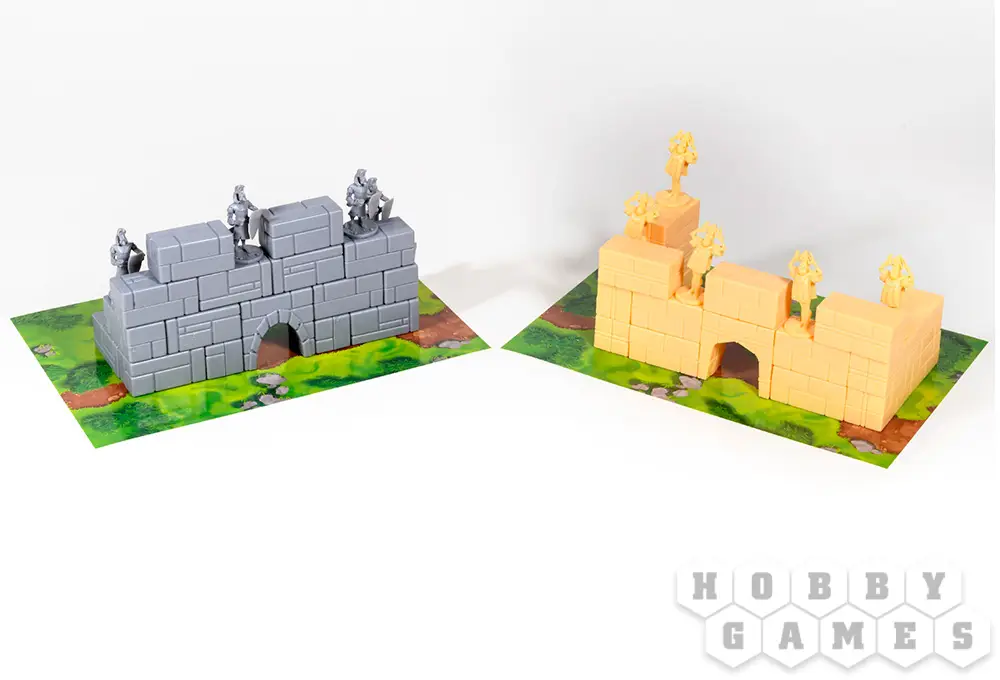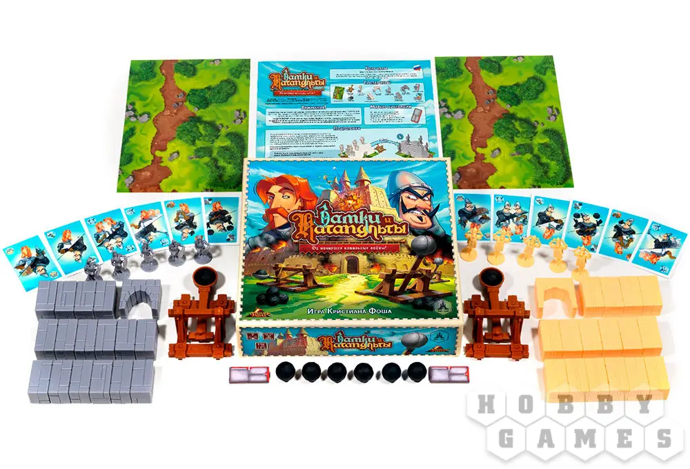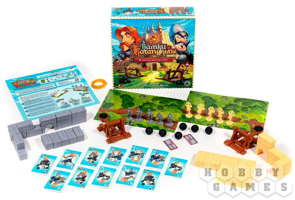 "Замки и Катапульты" – это семейная интерактивная игра, в которой двум игрокам предстоит возвести укрепления из строительных блоков, расставить по ним фигурки своих солдат и начать катапультную артподготовку (контемпорари арт тут ни при чём!) перед наступлением. Они будут расстреливать замки друг друга и разыгрывать карты действий, ремонтируя укрепления, производя залпы, воруя эти карты друг у друга и склоняя солдат противника к предательству. Выиграет тот, кто выведет из строя всю армию противника.