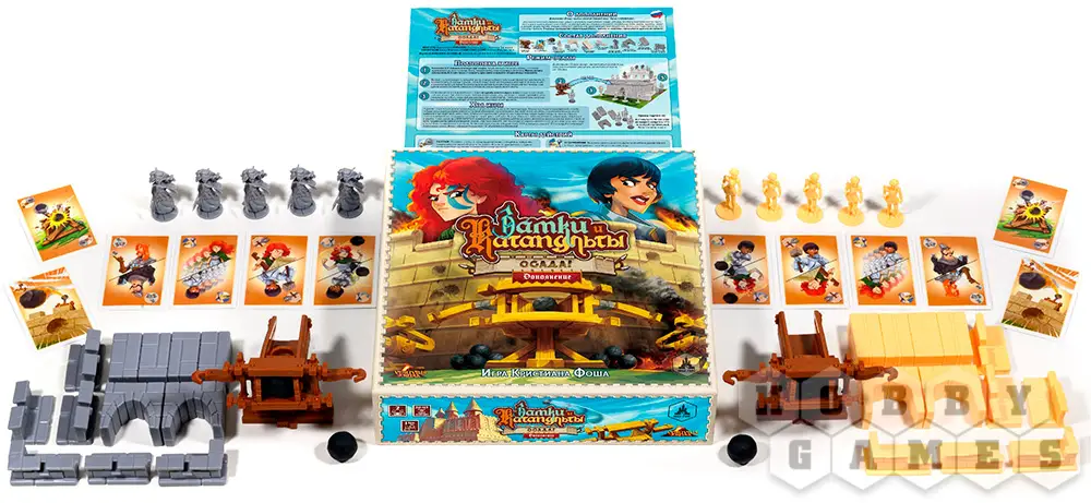 Внимание! На коробке может быть указано неверное количество игроков. Дополнение "Замки и Катапульты: Осада" добавляет в базовую версию режим для четырёх игроков и рассчитан не на 2, а на 2-4 игроков.