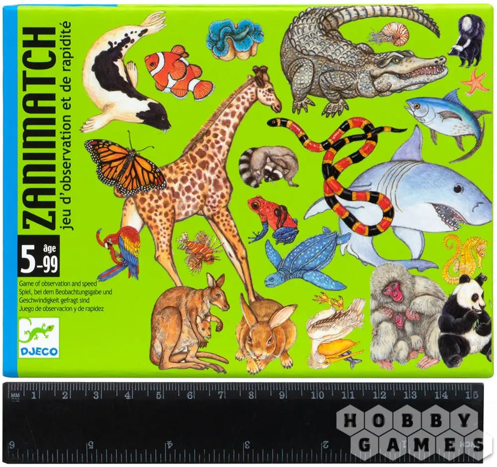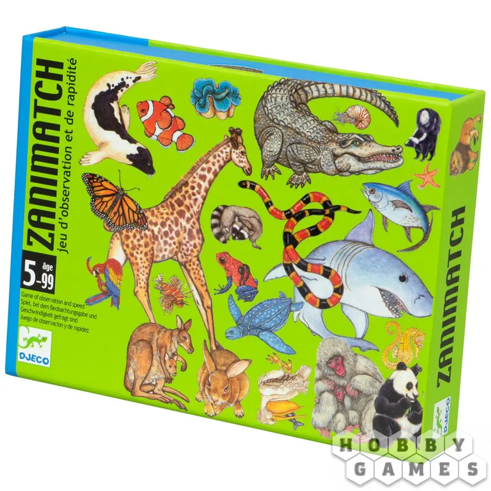 Увлекательная карточная игра Zanimatch с яркими иллюстрациями животных будет интересна детям с пяти лет. В игре присутствуют большие карты со множеством животных, они называются "путаницы". Перед игрой всем участником раздаются по 8 карточек с животными, а в центре стола кладутся "путаницы". Нужно быстрее других игроков найти животных со своих карт на большой карте, чтобы скинуть карты в сброс. Цель игры – первым остаться без карт или с наименьшим количеством карт, когда все "путаницы" будут разыграны. Это не только соревновательная, но и познавательная игра, ведь дети смогут изучить больше 50 животных!