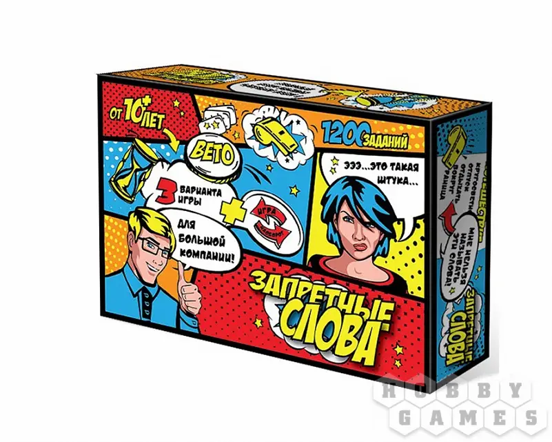 Настольная игра «Запретные слова» - одна из полюбившихся всем командных игр на ассоциации и угадывание слов. Простые правила и динамичный игровой процесс в сочетании с ярким поп-арт оформлением подарят массу позитивных эмоций.