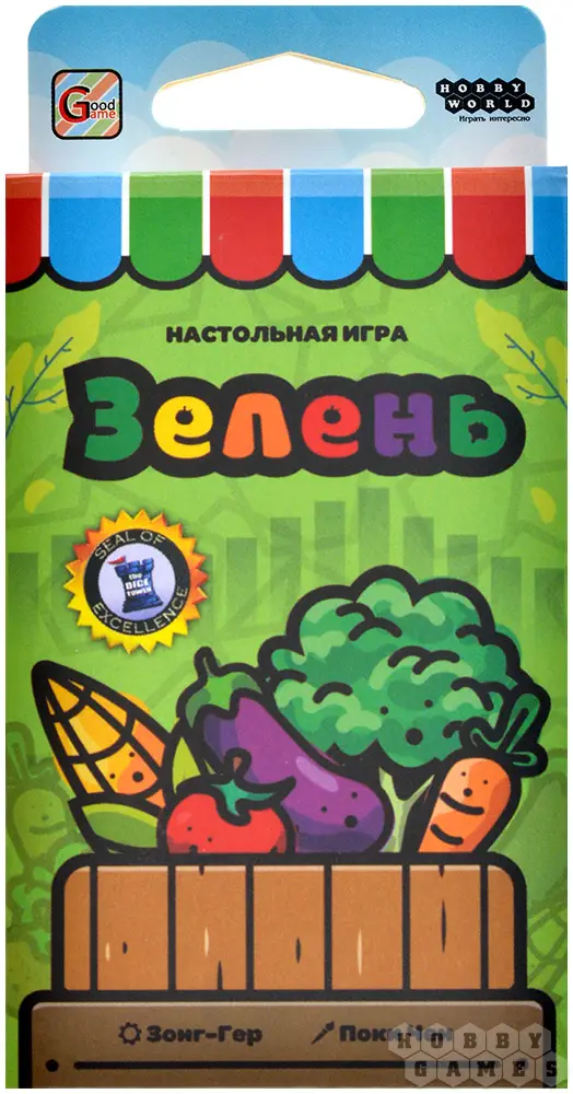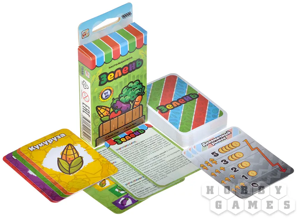 "Зелень" – это карточная игра с простыми правилами, в которой вы станете участниками рынка и будете оказывать влияние на стоимость овощей. Причём вам самим не придётся на них тратиться, но, чтобы получить наибольшую выгоду, к выбору карты придётся подходить с умом. Динамичный игровой процесс и яркие иллюстрации овощей подарят вам незабываемые эмоции от партии!