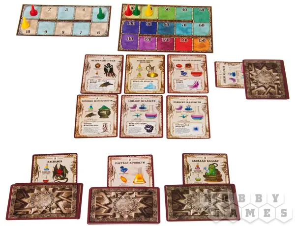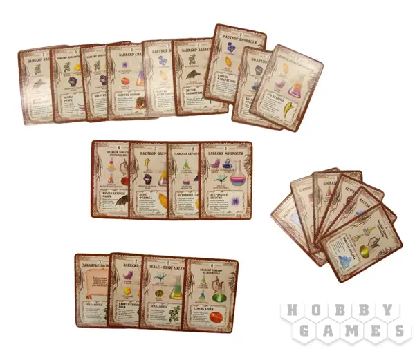 К игре выпущено два дополнения ("Гильдия Алхимиков" и "Университетский курс"). Также игра "Зельеварение" выпущена в большой подарочной упаковке, включающей все части. Если вы фанат игры "Зельеварение", подарочный набор станет для вас настоящим подарком. Игровые карточки оформлены на высоком уровне с отличными иллюстрациями.