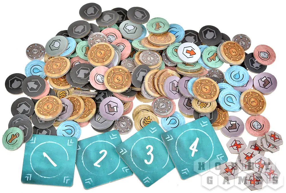 Бесплатным бывает только сыр в мышеловке, поэтому имейте в виду, что за любое действие придётся заплатить. Помимо основных действий, можно выполнить и сколько угодно дополнительных, но за них тоже придётся заплатить ресурсами. Находясь в городе, можно продать ресурсы и заработать пекунии (местная валюта), обучить сенсорика новому навыку или провести тренировку и получить новый жетон действия любого типа. Ведь чем лучше ваша форма, тем вы выносливее и больше действий вам доступно!