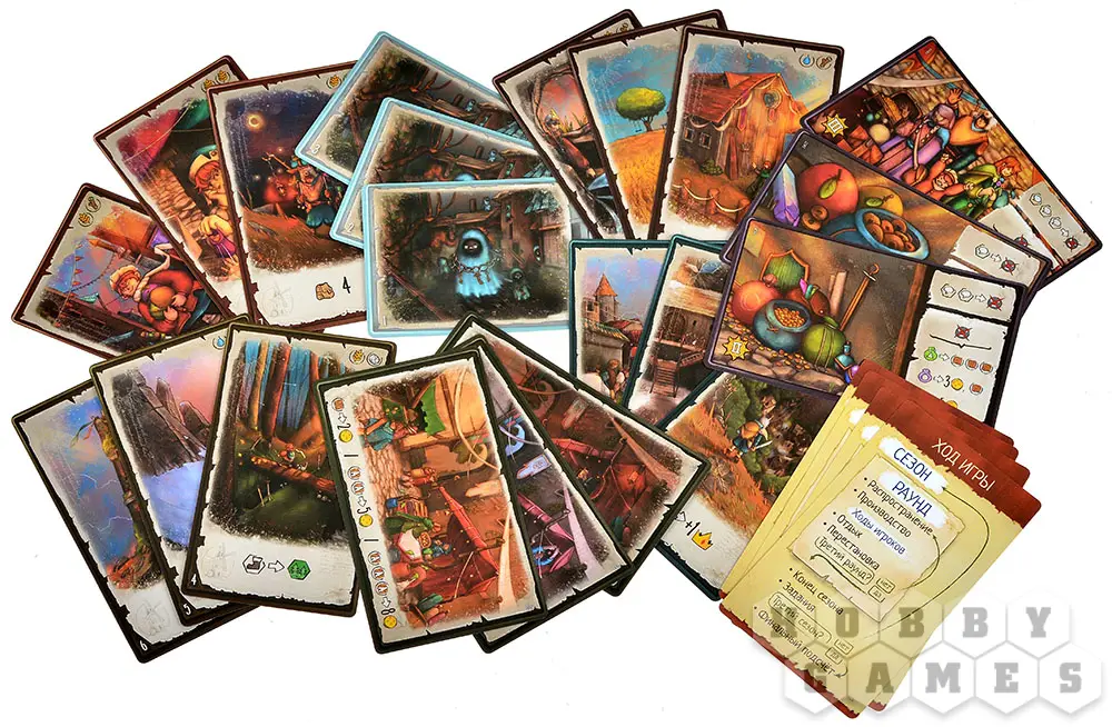 Размер карт: 119x69 мм (рекомендуются протекторы из данного раздела, 25 шт.)