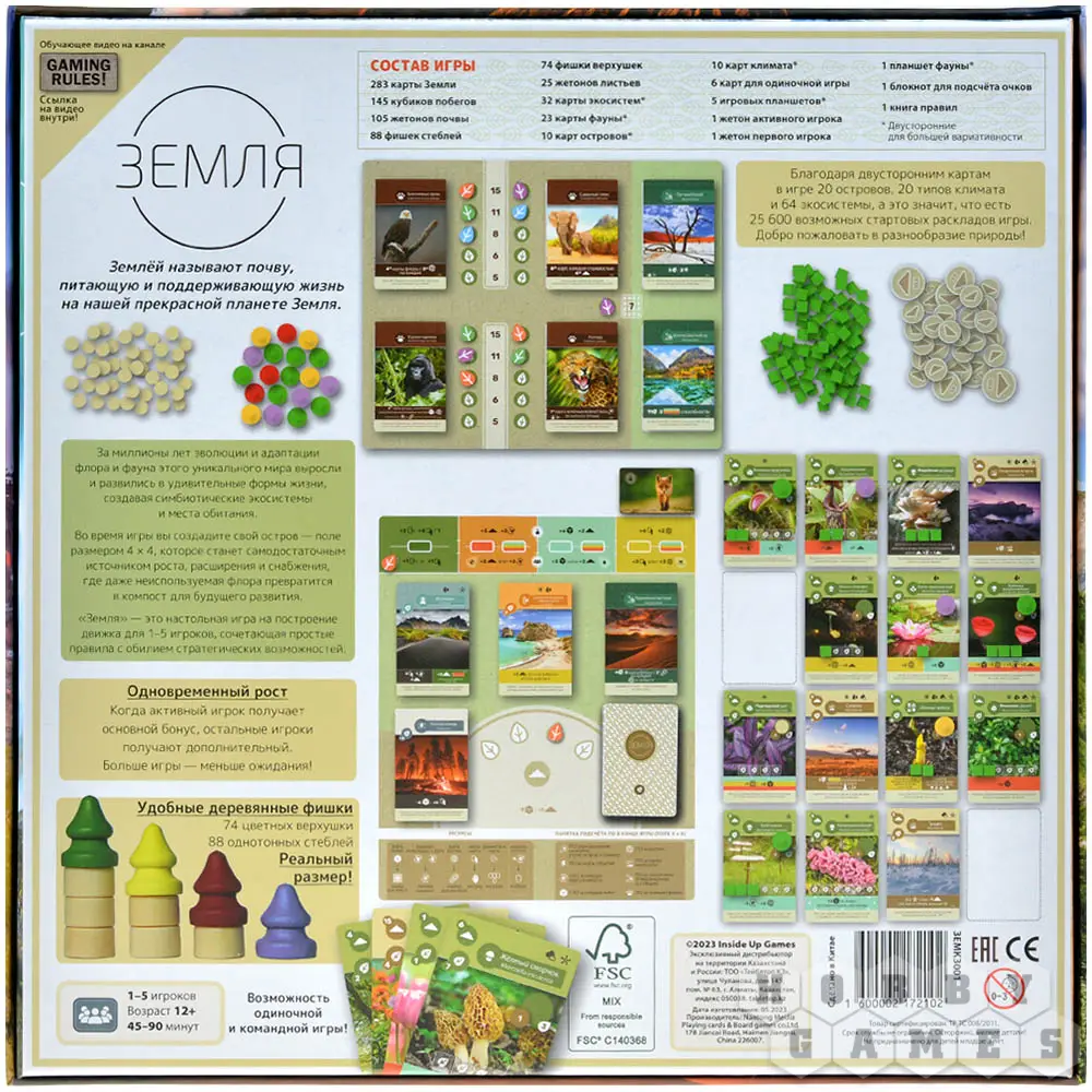 "Земля" – это настолка для небольшой компании до пяти человек и подойдёт даже для игры в одиночку. Вам предстоит создать собственный остров! В этой игре, подобно настоящему миру, вы откроете для себя новые связи и способы взаимодействия, исследуя богатую экосистему вашего острова!