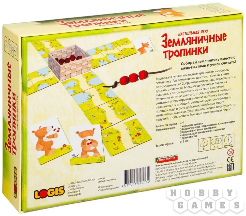Сказочная математика. Настольная игра Земляничные тропинки прежде всего заинтересует родителей дошкольников - ведь перед вами самое настоящее пособие для устного счёта, превращающее "урок" математики в волшебную сказку. Нанизывание крупных деревянных ягод-бусин на шнурок улучшает мелкую моторику, что способствует развитию мышления. В процессе игры малышам придётся пересчитывать ягодки, а также сравнивать их количество, осваивая понятия "больше" и "меньше". Вдобавок, добрые медвежата научат юных игроков делиться своими личными достижениями, ведь в конце концов на чай с самым вкусным пирогом приглашаются все!