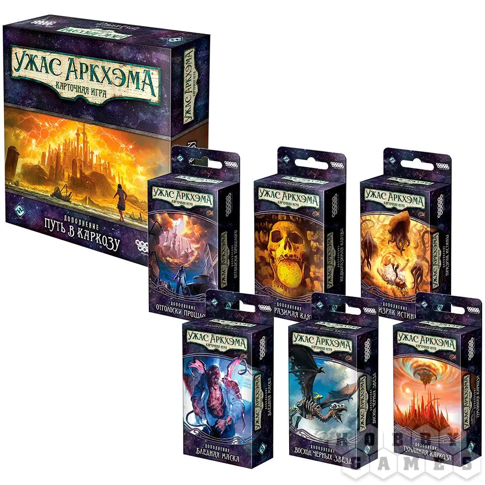 Каркоза – заброшенный мистический город, скрытый в магическом тумане другого измерения. Раскройте тайны его зловещих обитателей в кампании "Путь в Каркозу", состоящей из большого одноимённого дополнения и шести дополнительных сценариев. Все они вошли в набор дополнений "Жёлтые знаки" со скидкой 15%.