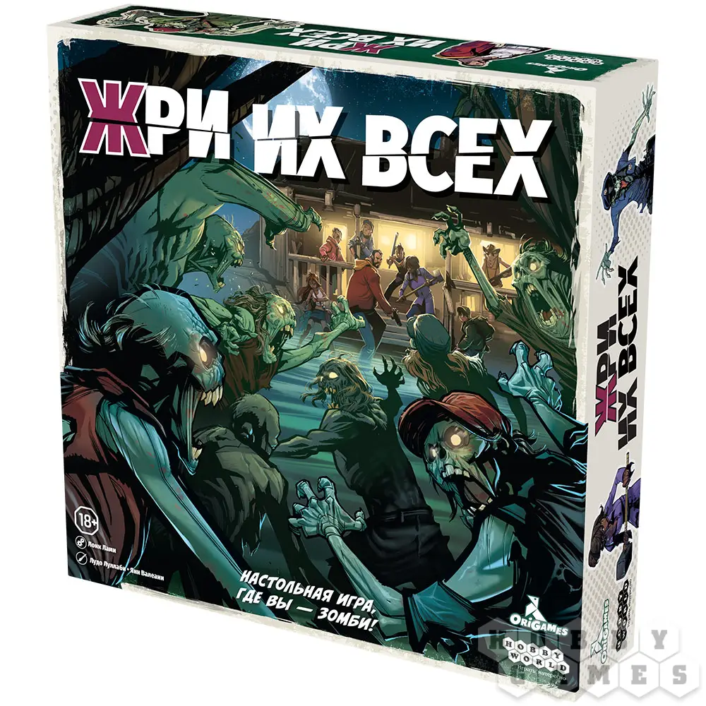 "Жри их всех" – это динамичная соревновательная игра, где каждый управляет собственной ордой зомби, соревнуясь в скорости и хитрости за право первым добраться до выживших. Люди в этом мире не лыком шиты: они обзавелись серьёзным снаряжением и умеют давать отпор, так что просто так их не возьмёшь. Придётся действовать сообща – как большая дружная семья мертвецов.