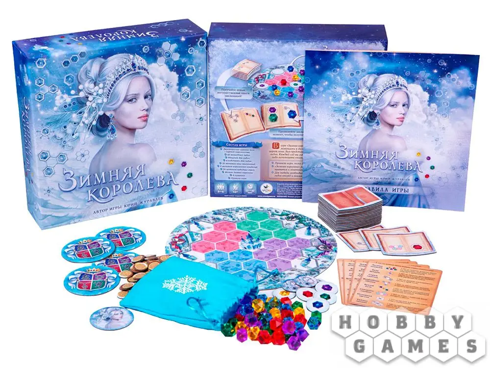 "Зимняя королева" - это абстрактная семейная игра, в которой вы перевоплотитесь в королевских чародеев и будете складывать волшебные ледяные узоры, соревнуясь за место главного советника Зимней королевы. Она подходит для игр с детьми, поскольку её правила очень просты, а также для продвинутых игроков: в ней необычные механики и есть стратегическая глубина.