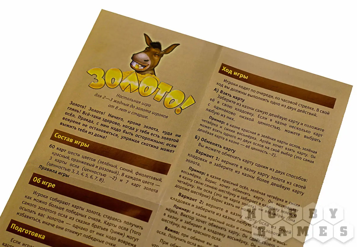 Игроки собирают карты золота, стараясь получить как можно больше победных очков. Карты осла (того самого золотого осла из сказки братьев Гримм) могут осыпать вас золотом — однако от них надо вовремя избавиться, иначе они отнимут победные очки.