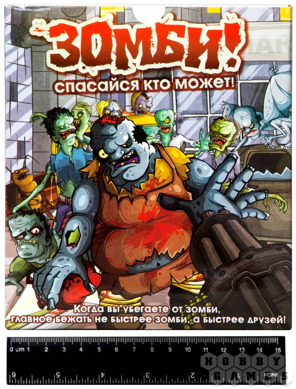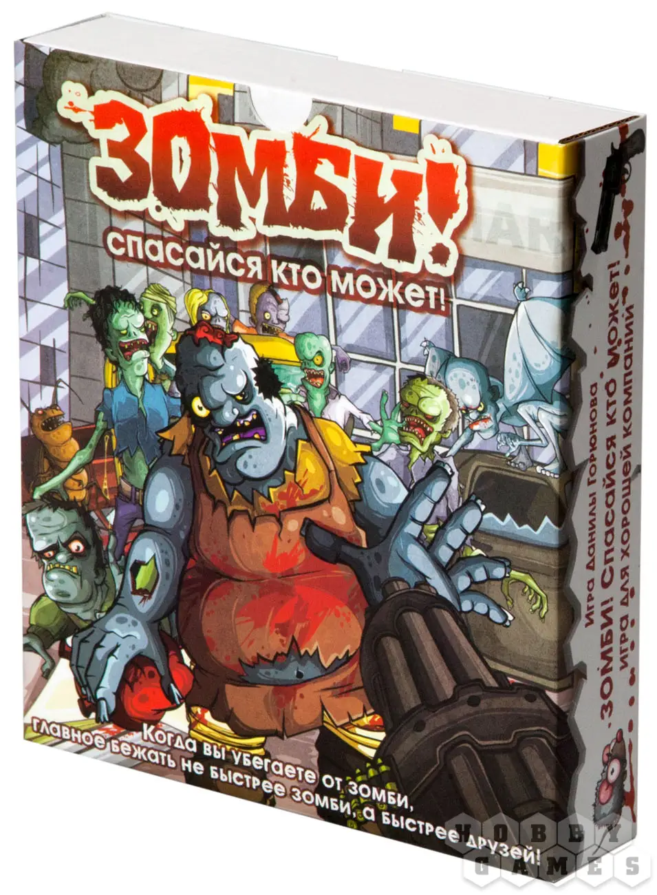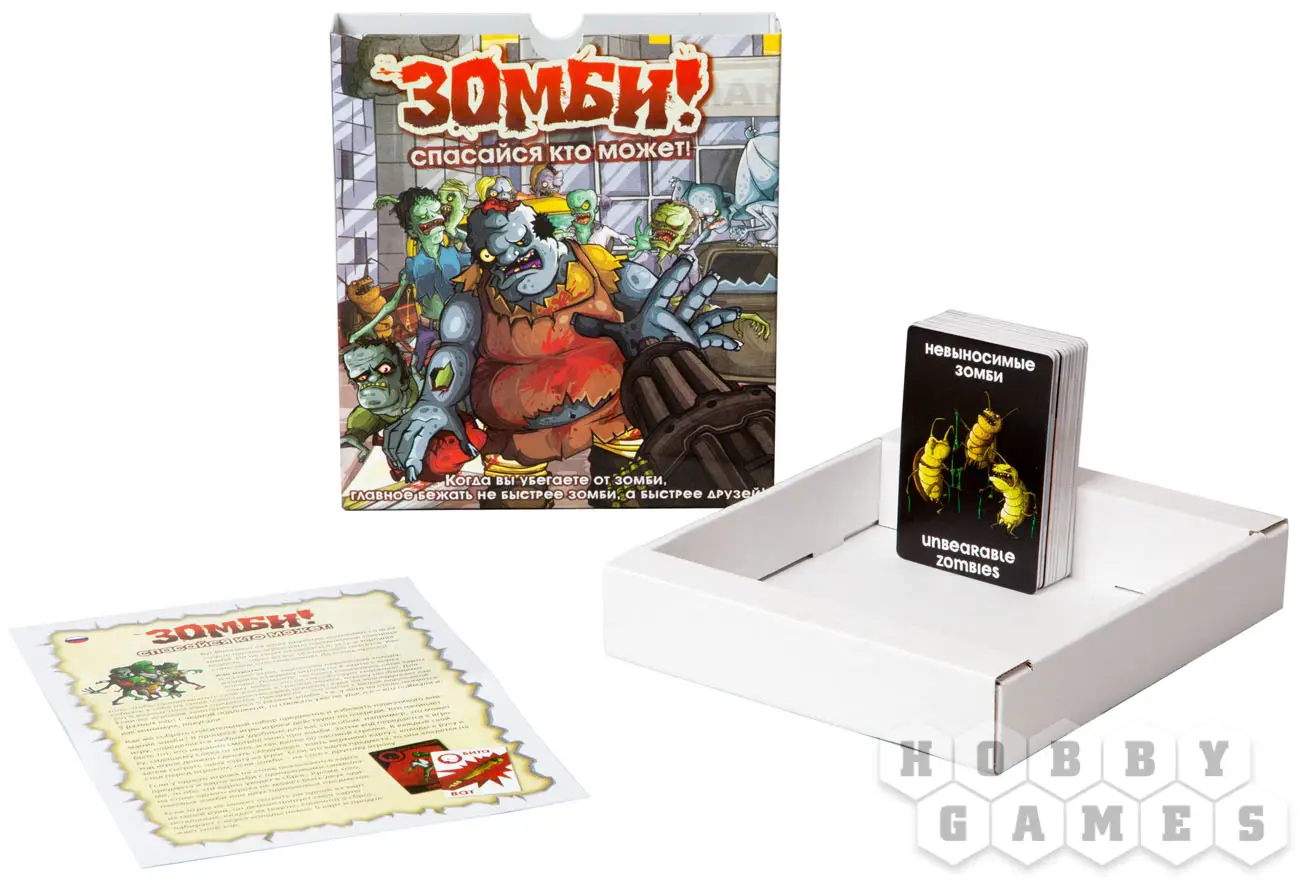 «Зомби! Спасайся кто может!» — это весёлая компанейская настольная игра для 3-7 выживальцев. В начале игры каждый игрок получает по четыре карты и каждый ход добирает одну. Посредством выкладывания карт перед собой или перед оппонентами вы прокладываете себе спасительную дорожку. Ваша задача — собрать как можно быстрее пять разных типов оружия. Но когда перед игроком накапливается пять разных карт зомби, он сам превращается в зомби и старается утащить за собой еще кого-нибудь. Это же так по-дружески...