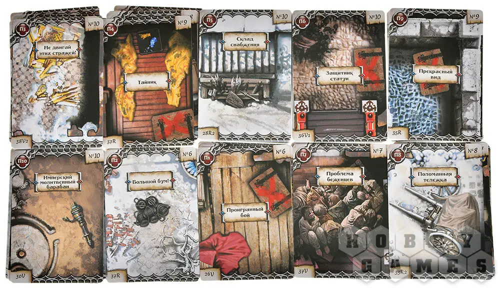 Размер карт: 63x89 мм (рекомендуются протекторы из данного раздела, 136 шт.)