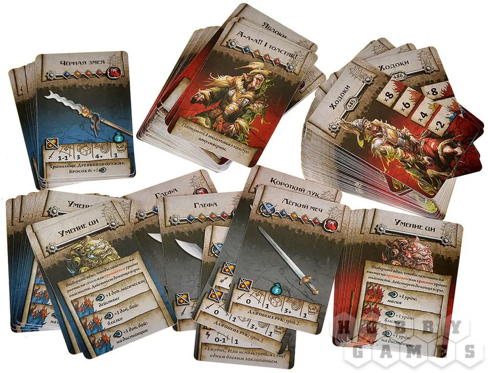 Размер карт: 41x63 мм (рекомендуются протекторы из данного раздела, 145 шт.)