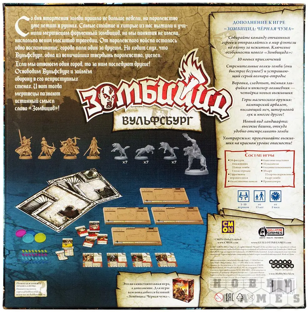 "Вульфсбург" – это крупное дополнение к игре "Зомбицид. Чёрная чума", которое развивает идеи оригинальной игры и переносит действие нашествие зомби в фэнтезийное средневековье.