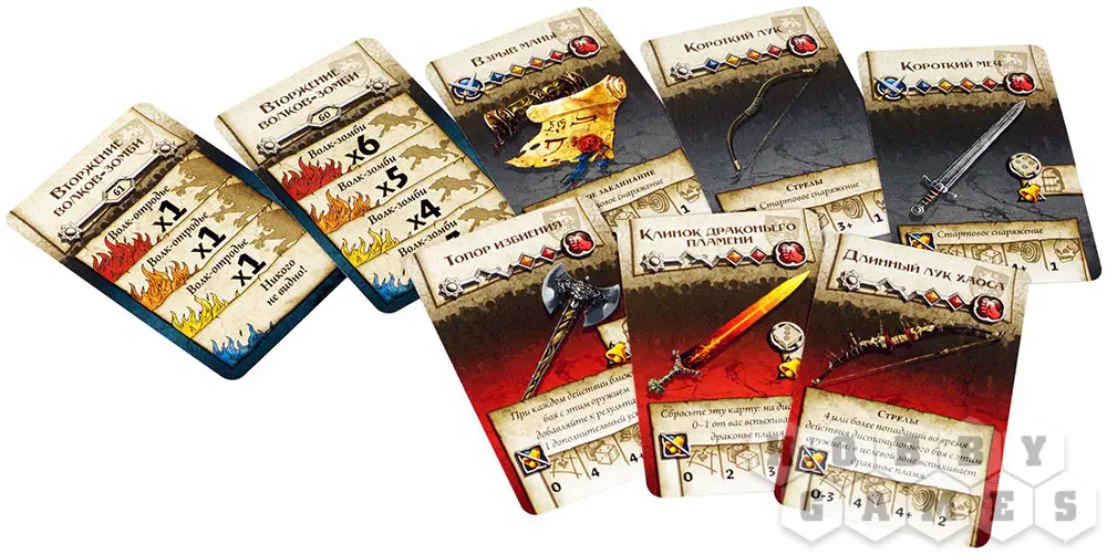 • Магическое снаряжение – встречайте десять видов могущественных артефактов. Некогда легендарные и очень редкие предметы теперь можно найти на заброшенных улицах под слоем грязи – своим владельцам они не помогли, но может быть помогут вам? На таких картах присутствуют специальные метки, определяющие, на каких именно уровнях опасности экипировку можно будет использовать. Некоторые карты обладают специальными условиями использование, но артефакты действительно очень мощные!