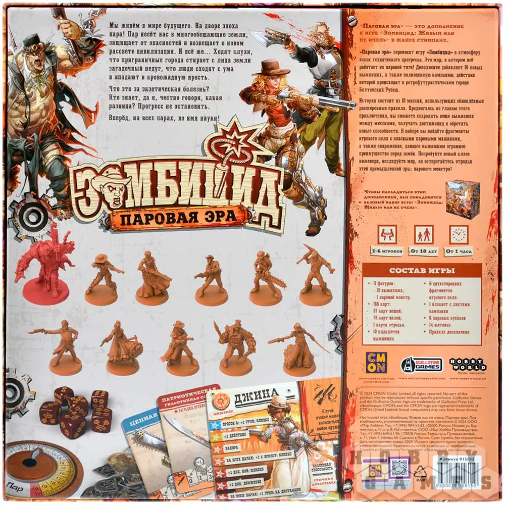 "Зомбицид: Живым или не очень. Паровая эра" – захватывающее дополнение к игре "Зомбицид: Живым или не очень" в стиле стимпанк. В этом мире, где всё зависит от паровой энергии, добавлено 10 новых выживших и полноценная кампания, развивающаяся в ретрофутуристическом городе Болтонский Рубеж.