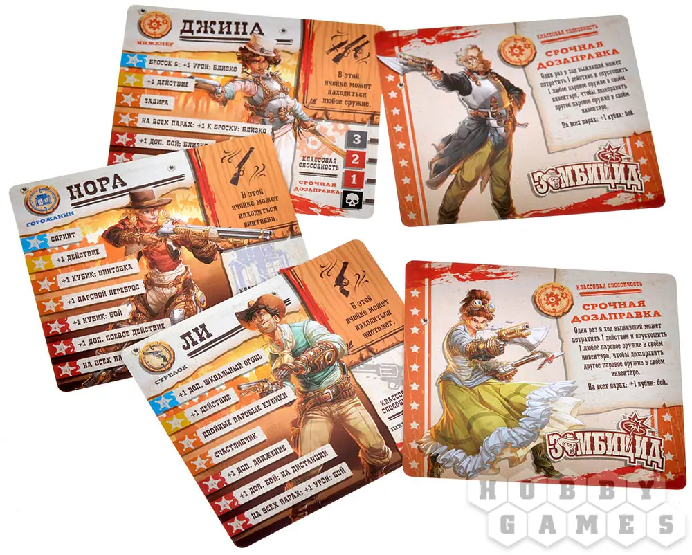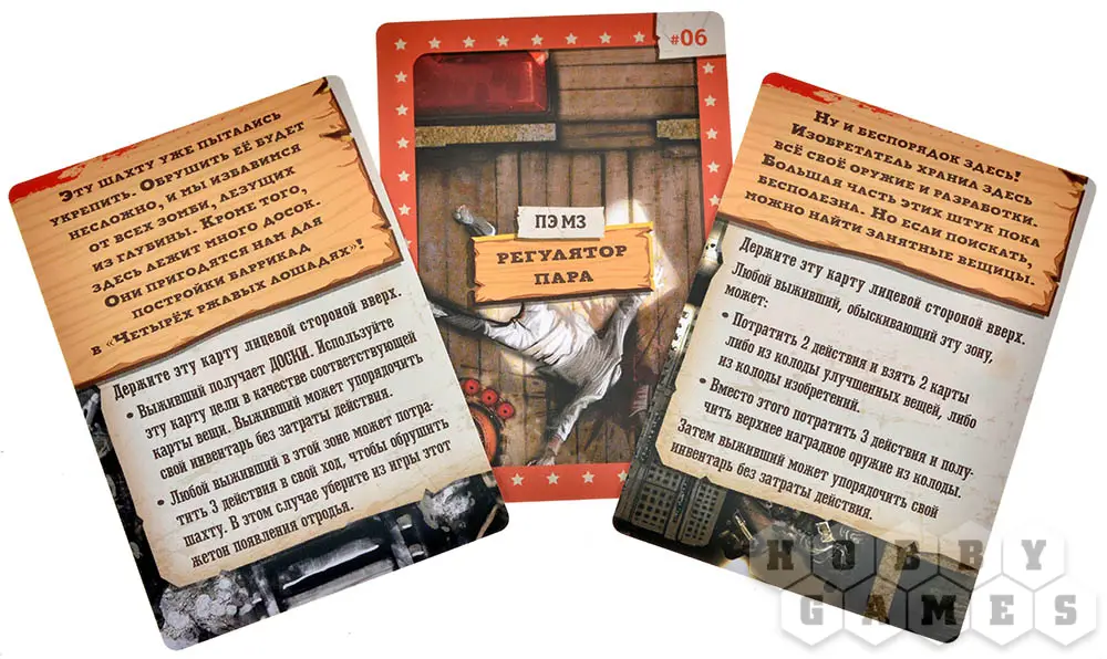 Действиями зомби управляет сама настольная игра за счет несложных правил и карточной колоды. Исследуйте окрестности в поисках оружия, уничтожайте полчища ходячих мертвецов, наращивайте адреналин ваших персонажей, раскрывая тем самым их способности. Чем больше зомби – тем более опасные вызовы предлагает игра!
