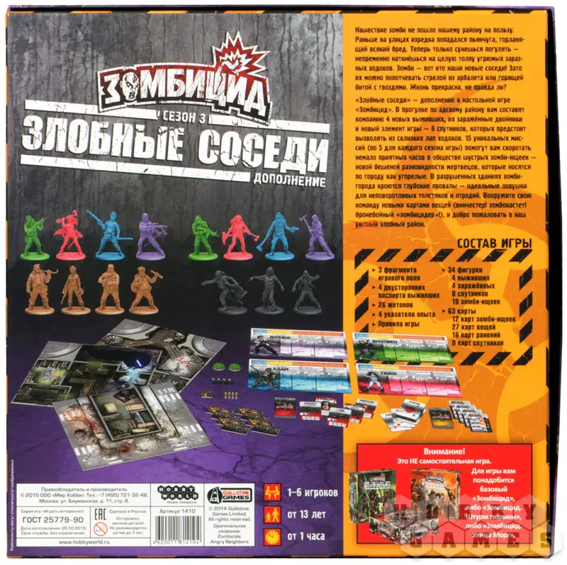 Внимание! Это не самостоятельная игра. Для игры вам понадобится базовый «Зомбицид», либо «Зомбицид. Штурм тюрьмы», либо «Зомбицид. Улица Морг».