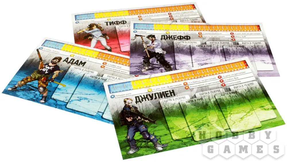 новое правило «Заражённого» — если всё пошло наперекосяк, и вы погибли (именно от рук зомби), не спешите выходить из игры. Вы можете отомстить за обиду, вернувшись в игру в виде заражённого персонажа. Да, скорее всего вы уже обречены, но вы ещё успеете дать жару! Вы становитесь гораздо более выносливыми (целых 5 ран, вместо обычных 2), но и более медлительными — вы не получаете добавочное действие на жёлтом уровне опасности. Опытные игроки могут сразу начинать игру за заражённого персонажа;