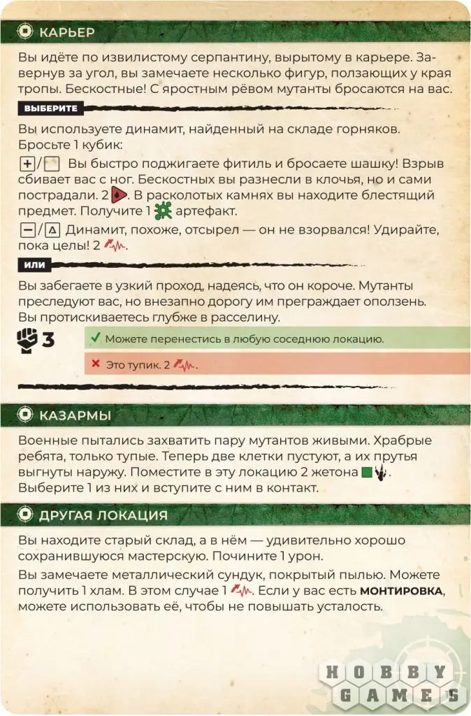 Вся игра происходит на игровом поле и локациях, по которым будут ходить игроки, и где будут выкладываться жетоны мутантов и аномалий.