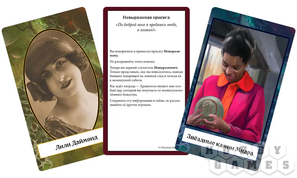 Колода "Оружие и артефакты" содержит множество полезной информации о различных видах холодного и огнестрельного оружия и мистических артефактах, которые будут попадаться на пути героев