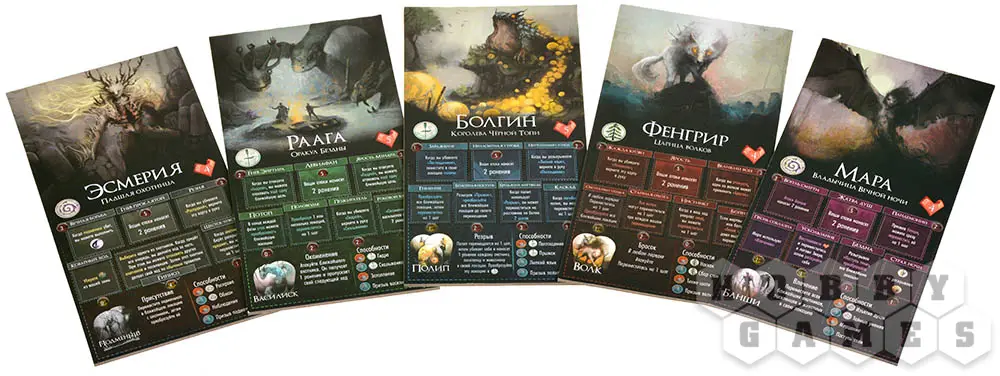 Одно из главных достоинств игры – вариативность. 6 разных охотников обладают рядом уникальных способностей: к примеру, ясновидящая Хельга способна смотреть получать смутную информацию о местонахождении Зверя, а мастер ловушек Крим знает, как навязать врагу бой на своих условиях. Впрочем, и Звери способны поразить уникальными способностями: волчица Фенгрир ведёт за собой стаю опасных хищников, а таинственная Эсмерия способна гипнотизировать охотников и обращать их против собственных товарищей!