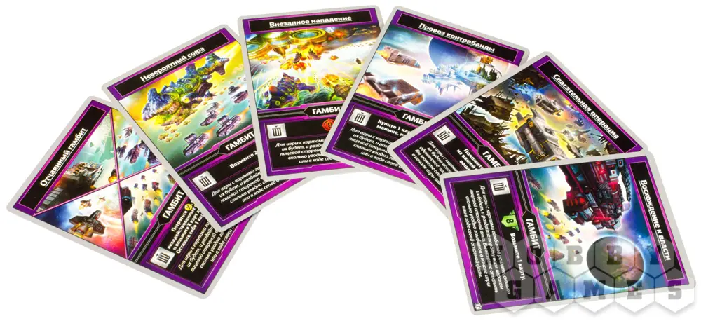 "Гамбиты" – новая механика, с картами, которые раздаются перед началом партии. Полученные карты гамбитов держатся перед игроком лицевой стороной вниз. Гамбиты не могут попасть на руку, в личную или торговую колоду. В начале игры или в любой момент своей основной фазы вы можете открыть сколько угодно лежащих перед вами гамбитов. Первичное свойство гамбита тут же вступает в силу и действует, пока эта карта лежит перед вами