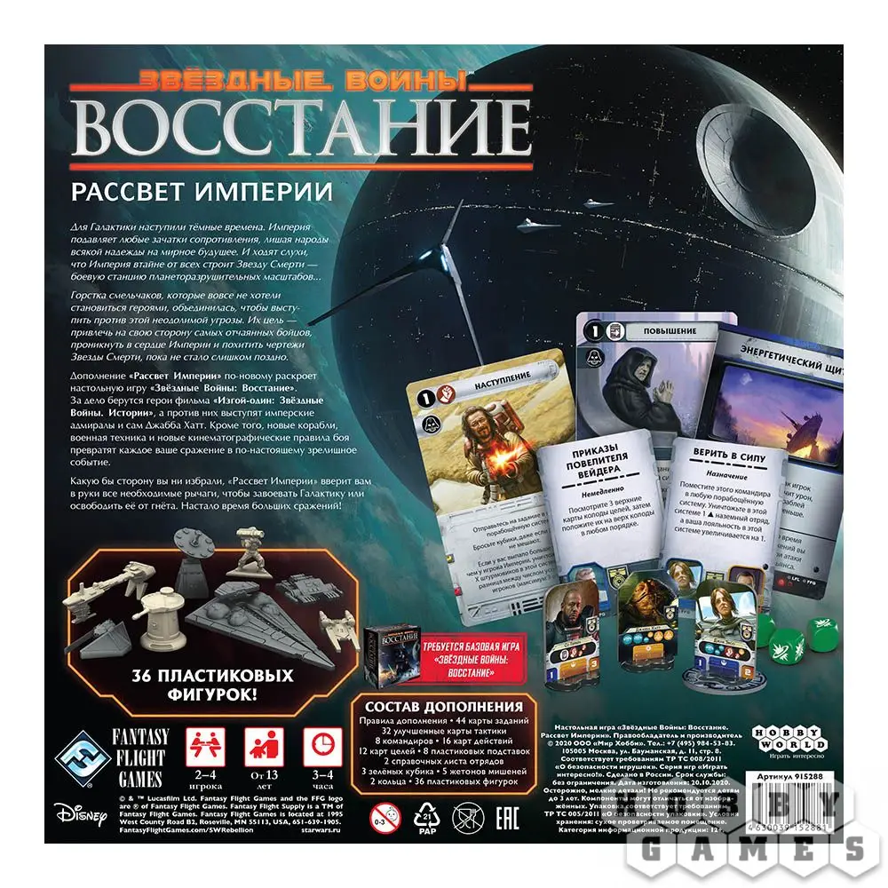 Дополнение "Рассвет Империи" по-новому раскроет настольную игру "Звёздные Войны: Восстание". За дело берутся герои фильма «Изгой-один: Звёздные Войны. Истории», а против них выступят имперские адмиралы и сам Джабба Хатт. Кроме того, новые корабли, военная техника и новые кинематографические правила боя превратят каждое ваше сражение в по-настоящему зрелищное событие.